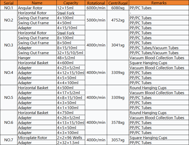 A variety of different rotors are available as options to meet the experimental needs of different fields. (Adapters ranging from 0.5ml to 500ml can be customized according to different experiments.)