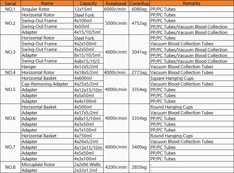 Six-level damping shock absorption ensures optimal centrifugation effect; adapters for 0.5-500ml tubes can be configured according to different experiments.